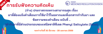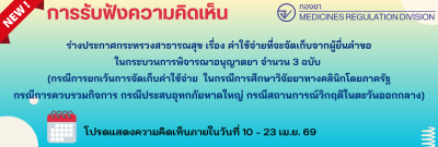รับฟังความคิดเห็นต่อร่างประกาศ อย. เรื่อง เอกสารหรือหลักฐานแสดงข้อมูลคุณภาพ ประสิทธิภาพ และความปลอดภัยของยาในการต่ออายุใบสำคัญการขึ้นทะเบียนตำรับยา และหลักเกณฑ์และเงื่อนไขในการพิจารณาข้อมูลด้านคุณภาพ ประสิทธิภาพ และความปลอดภัยของยา พ.ศ. ....